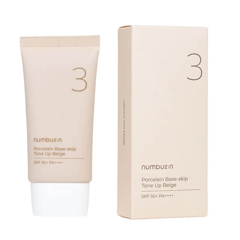 - For colour correction: Korean brand NUMBUZIN offers No.3 Porcelain Base-Skip Tone Up Beige. This multi-tasking primer evens skin tone, corrects redness, and provides a brightening effect.